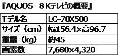 シャープの8Kテレビのスペック
